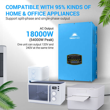 Sun Gold Power Off-Grid Solar Kit 18000W 48VDC 120V/240V LifePo4 20.48KWH Lithium Battery 18 X 415 Watts Solar Panels SGR-18K20E This Complete Off-...