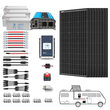 ACOPOWER 500W Mono RV Solar System Solar charging will provide about 2400 Watt Hours (Wh) or 200 Amp hours of charge per day (depends on sunlight ...